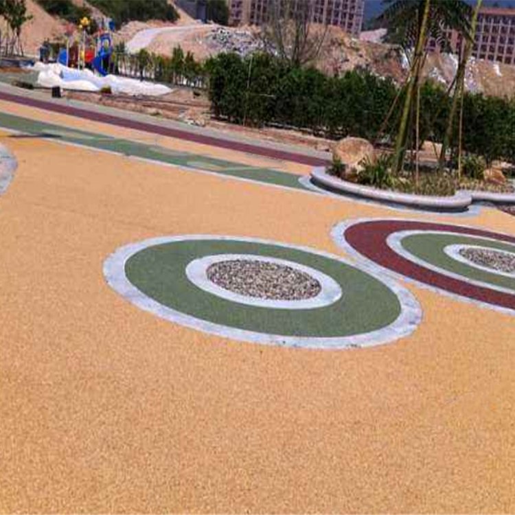 的水浆冲洗干净,使地面得以一“露”出天然彩石效果,露骨料透水地坪充分运用到天然石子自身的色彩、形状和