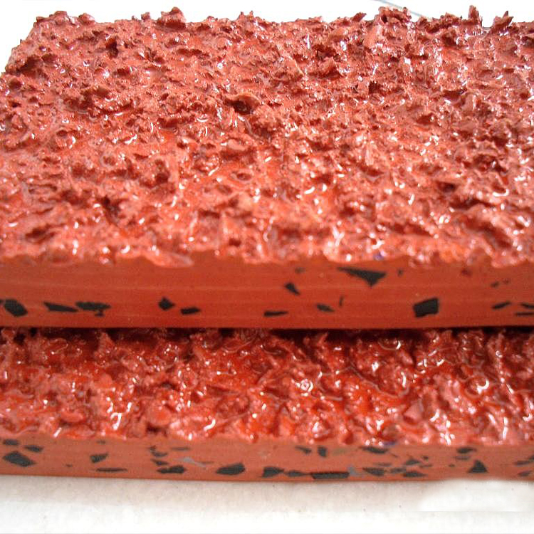c)刮面胶,在面胶未固化前,撒上红颗粒,待其完全固化后,将多余面胶粒清扫干净。
