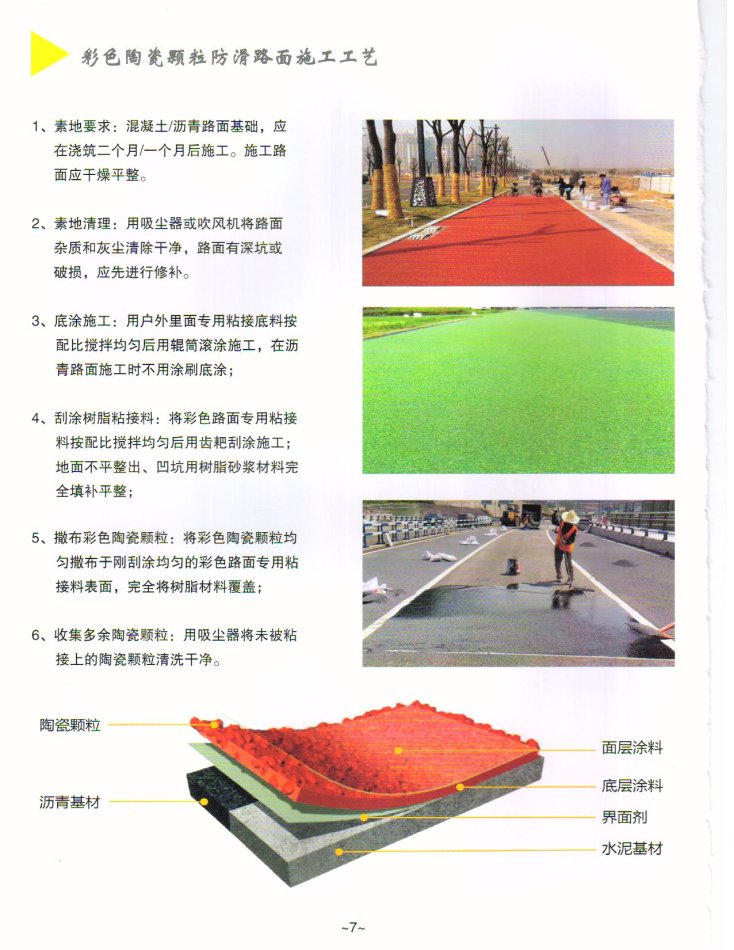 2、因其颜色多样、质量好等特点被应用到了道路的铺设中,如果再加入添加剂的话效果更佳,可以延长道路的使用寿命。