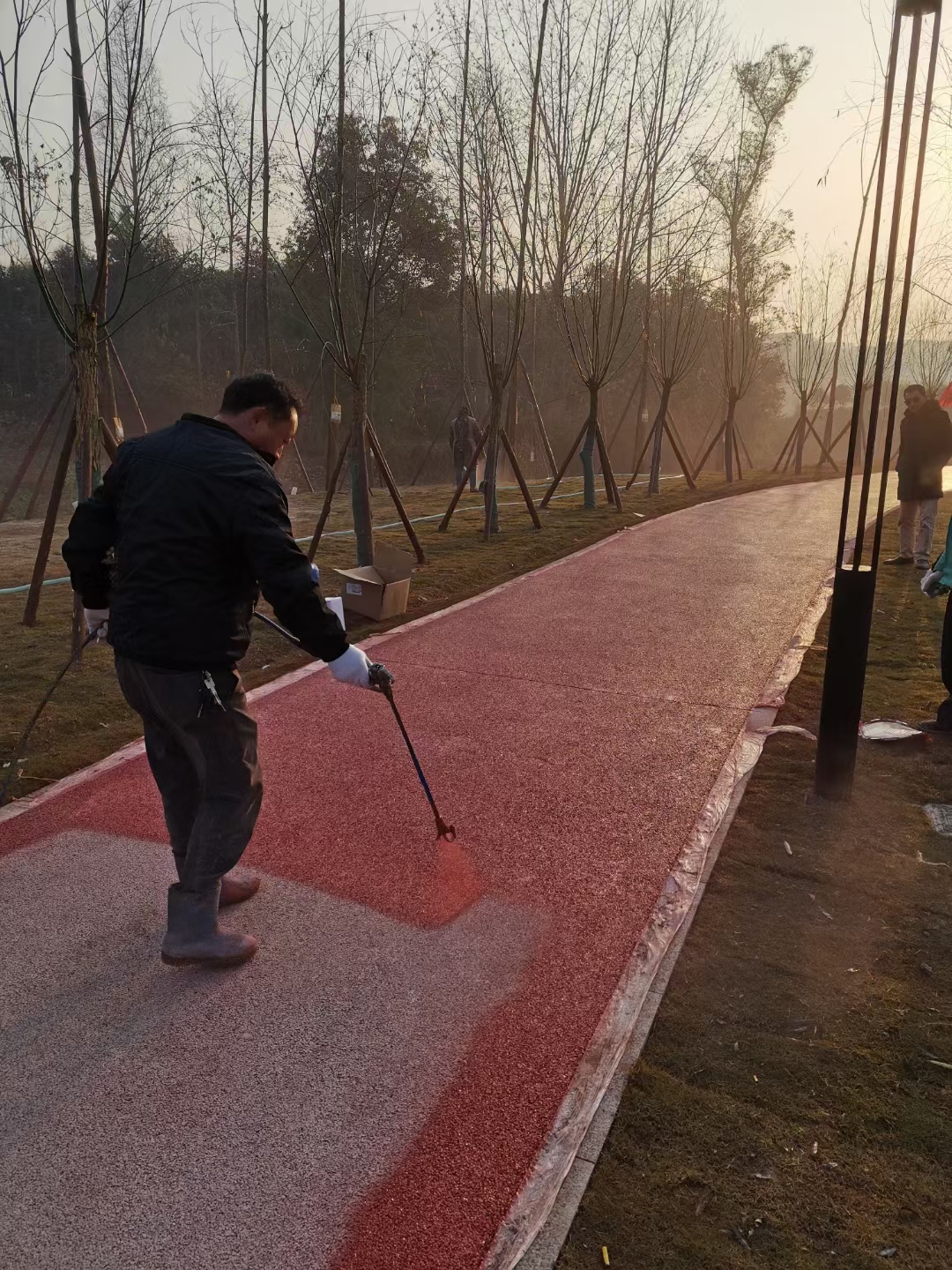 广东大来生态集团的冷铺型高粘彩色透水沥青铺装优势: