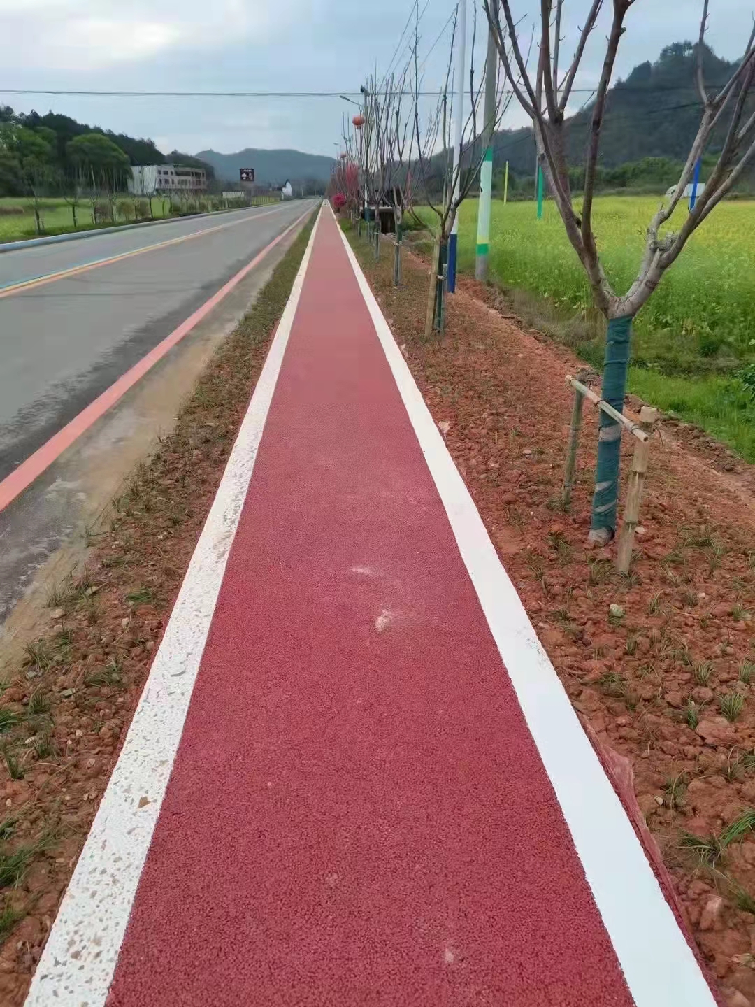 而表层的达成地石丽冷铺型透水沥青具有粘接力强,是一种会呼吸的地坪材料,能够有效抵抗湿热交替环境下路面变形,表面质感细腻而不滑,配合粗骨料提高耐磨系数,能够提高出行的安全性,作为透气新型海绵城市材料,透气透水、抗压强度好、透水系数高、不仅美化路面还给原始沥青道路提供了丰富的颜色组合方案施工高效便捷,跟传统沥青对比,少了热拌源的依赖,减少施工的步骤,大大提高施工便捷性。