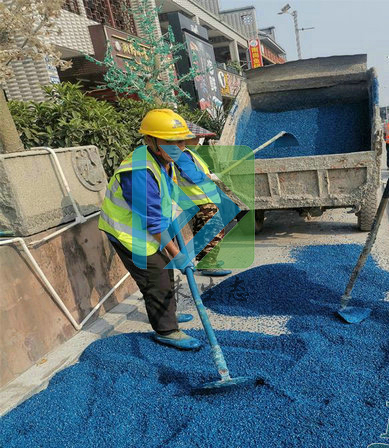 黄埔大沙地海绵城市透水路面施工——冷铺型高粘彩色透水沥青材料案例