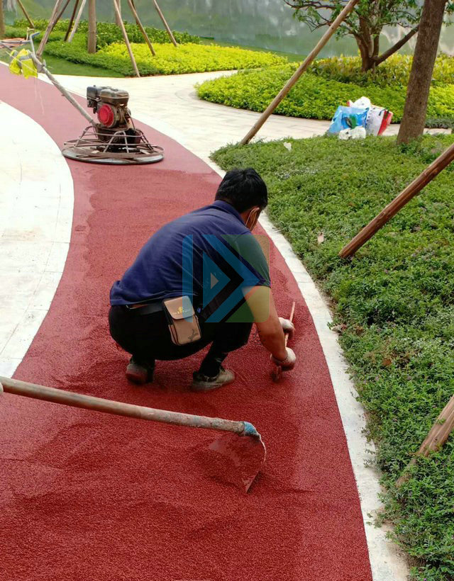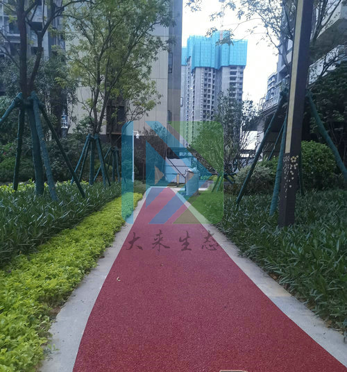 (3)对行人的出行提供了方便,且铺装在公园里面,彩色透水混凝土路面能够将湿润土壤,从而给周边植物补充水分,增加土壤的透气性。