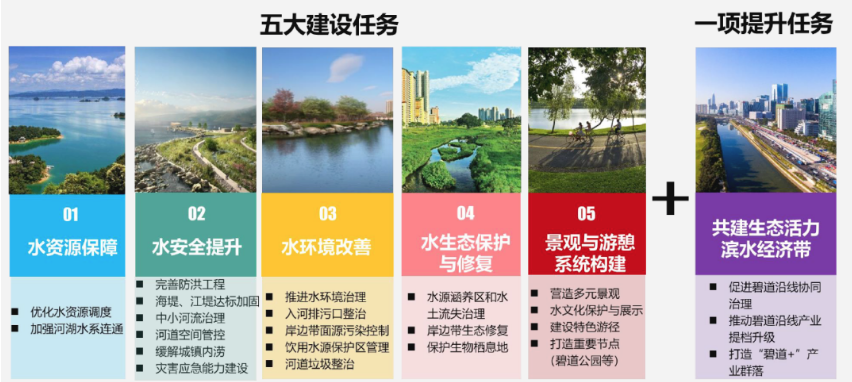规划设计基本思路围绕碧道建设“5+1”重点任务,包括水资源保障、水安全提升、水环境改善、水生态保护与修复、景观与游憩系统构建五大建设任务和共建生态活力滨水经济带,以“增江碧道,山水画廊”为主题,实现首条水岸同治的高标准城镇型碧道建设。