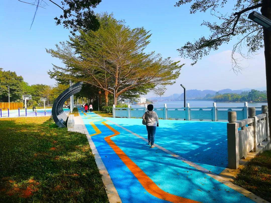 经朋友介绍说增城西堤公园已经对外开方了,趁周末约上几个姐妹,带上小孩一起来这边走走,通过改造完成后的西堤公园五彩缤纷,十分抢眼。特别要介绍的是围绕公园内的人行步道,是天然环保透气型的透水混凝土方式铺装,整体以蓝色、黄色、橙色的彩色人行步道和绿道横穿整个公园,与公园内的江景、花草树木相呼应,让人眼前一亮,充满了盎然生机。不得不说,这样的设计真的是花了心思的。
