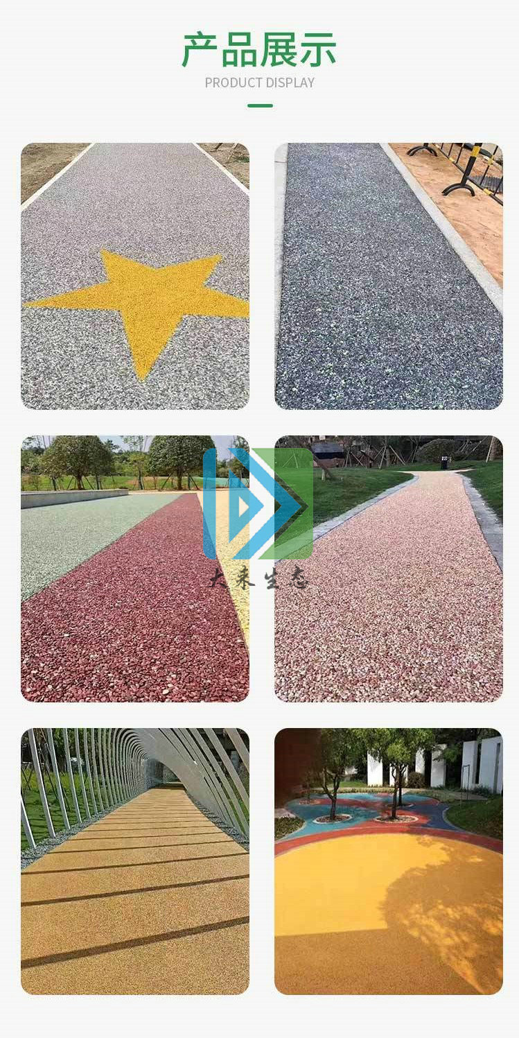 胶粘石透水路面是以进口专用胶与天然彩色石子经特殊工艺制作而成,具有坚固美观、色泽自然、不易褪色的特点。