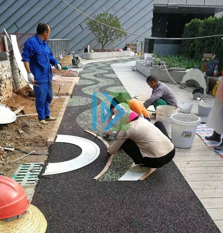 荧光胶粘石,也可叫做发光胶粘石,目前市场常见以有机树脂类自发光产品为主,比如:亚克力发光石、环氧发光砖等以树脂作载体的自发光材料,易老化黄变、不耐磨损,且目前尚未有理想粘合剂,易脱落,导致发光寿命短;
